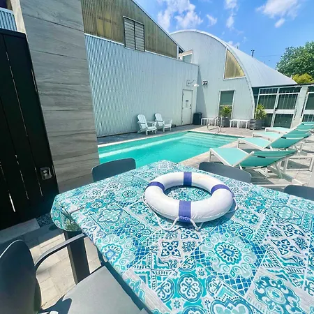 Die 7-Zimmer- The Moon Quonset Hut Vacation Rental Heated & Chilled Pool New Orleans liegt in einer 25 Gehminuten Entfernung vom Madame John's Legacy und bietet einen privaten Swimmingpool, was für einen entspannten Aufenthalt sorgt.