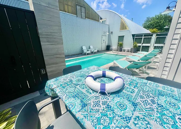 Situada a 200 metros del Parque Crescent, la The Moon Quonset Hut Vacation Rental Heated & Chilled Pool Nueva Orleans ofrece acceso a una piscina privada. Con un aparcamiento, la casa de vacaciones se encuentra al lado de la Casa de la Moneda de Nueva Orleans (US Mint).